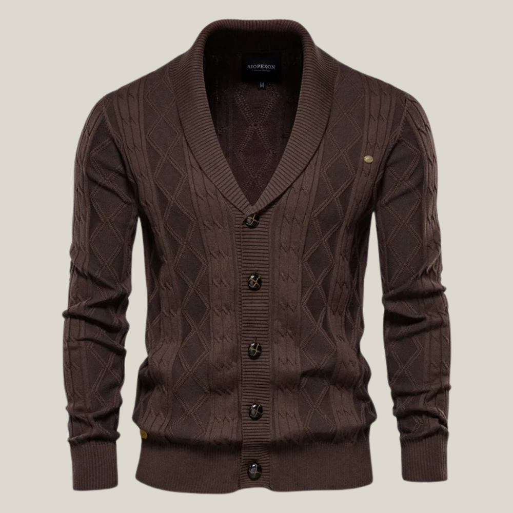 This Men’s Cotton Cable Knit Sweater combines classic elegance with rugged durability, making it an essential layering piece for cooler weather. Crafted from 100% breathable cotton, this cardigan offers a soft yet structured feel, keeping you comfortable while maintaining a refined look.